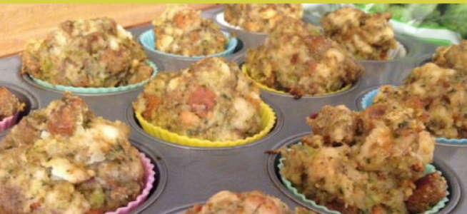 This recipe makes an ENORMOUS amount of dressing. I usually fill a 9 x 12 inch dish with the dressing for Thanksgiving day and then use the rest to make some Stuffing Muffins. These freeze exceptionally well. Since I also freeze some cooked turkey, we are all set to enjoy some quick turkey dinners all winter long.